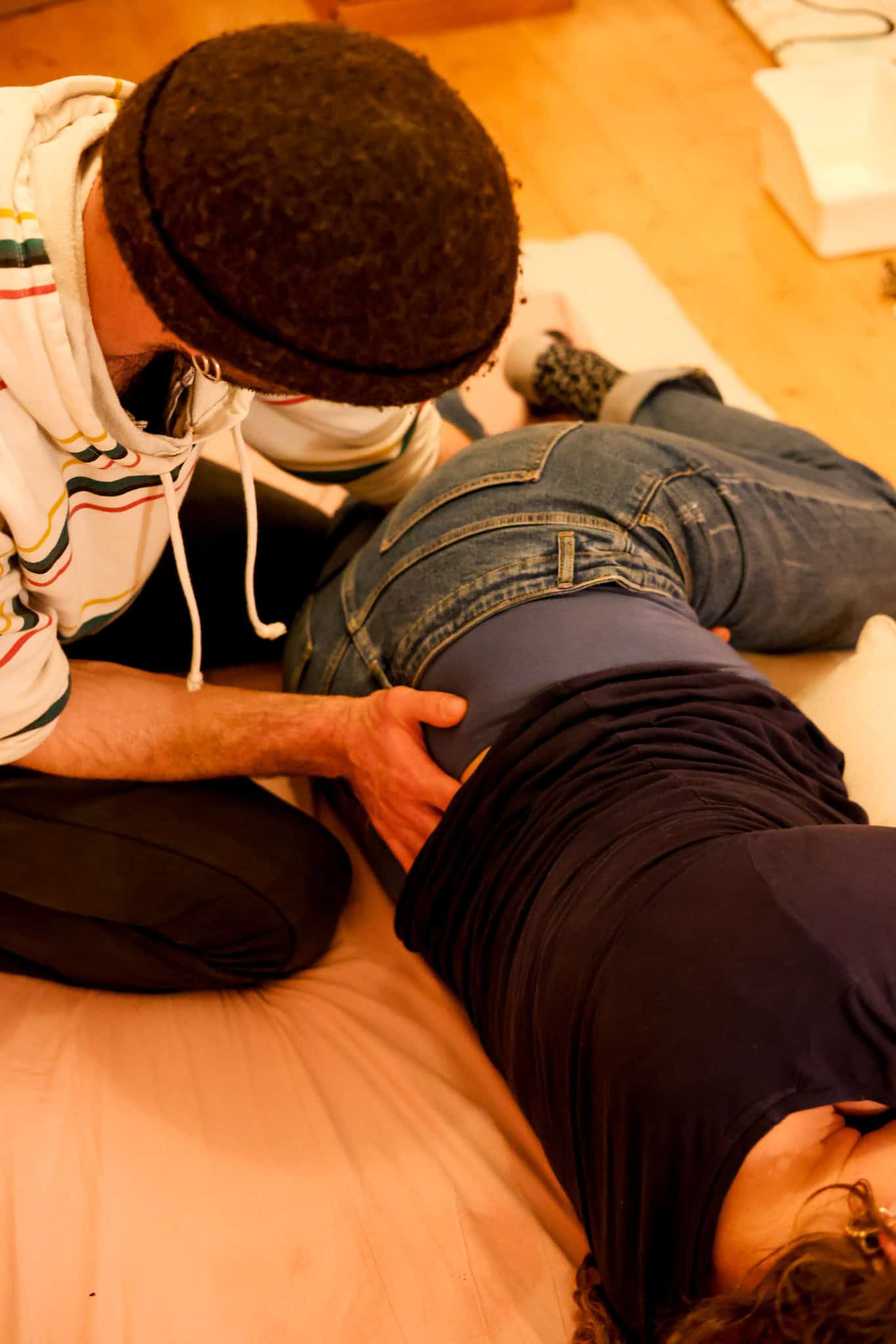 Une autre proposition majeure de l’haptonomie est de « donner de l’espace dans le bassin », ou comment apporter du confort à la maman et faire de la place au bébé à travers l’ouverture « de la base ». Bercements, étirements, ancrage, sont autant d’outils permettant aux parents d’acquérir un sentiment de compétence et de confiance en soi. Et ainsi reprendre la responsabilité de l’expérience à vivre ensemble…